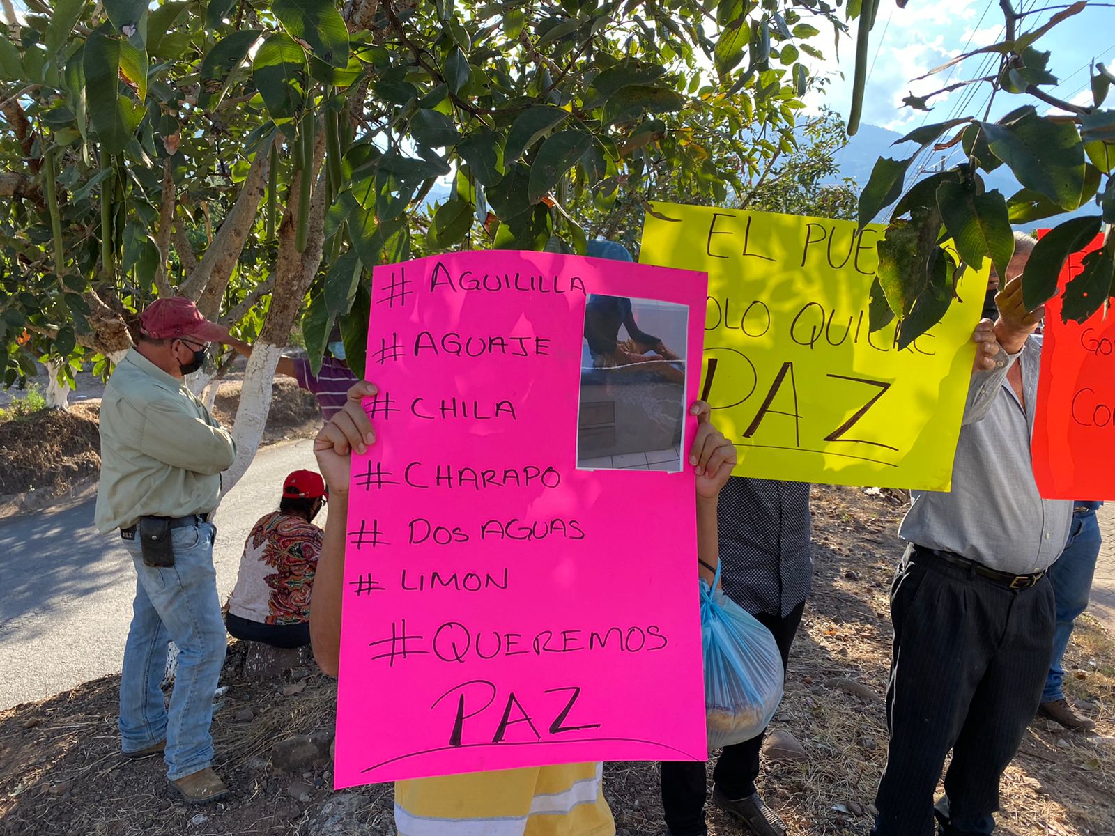 Los manifestantes de Aguililla, pidieron a la autoridad militar notificar a los mandos del Ejército que se encuentran en Tepalcatepec, que esperan dialogar con ellos, además de expresar que quieren paz.