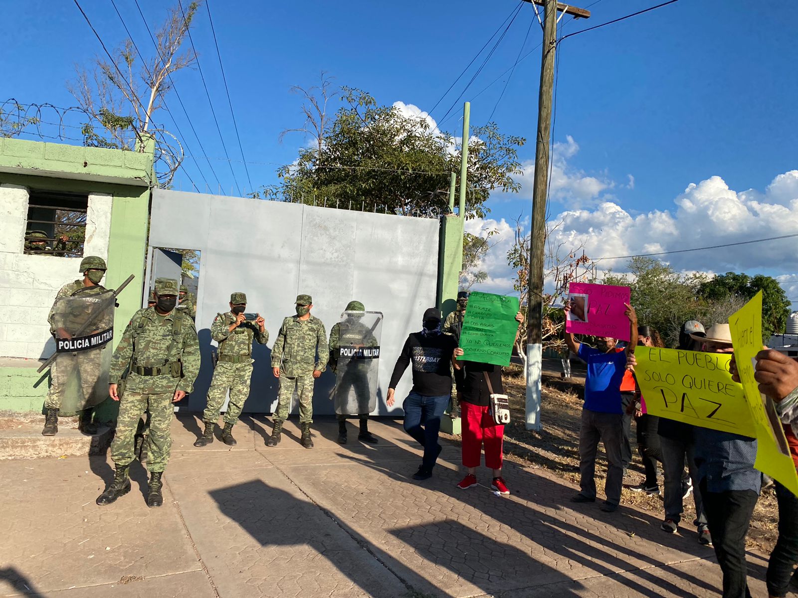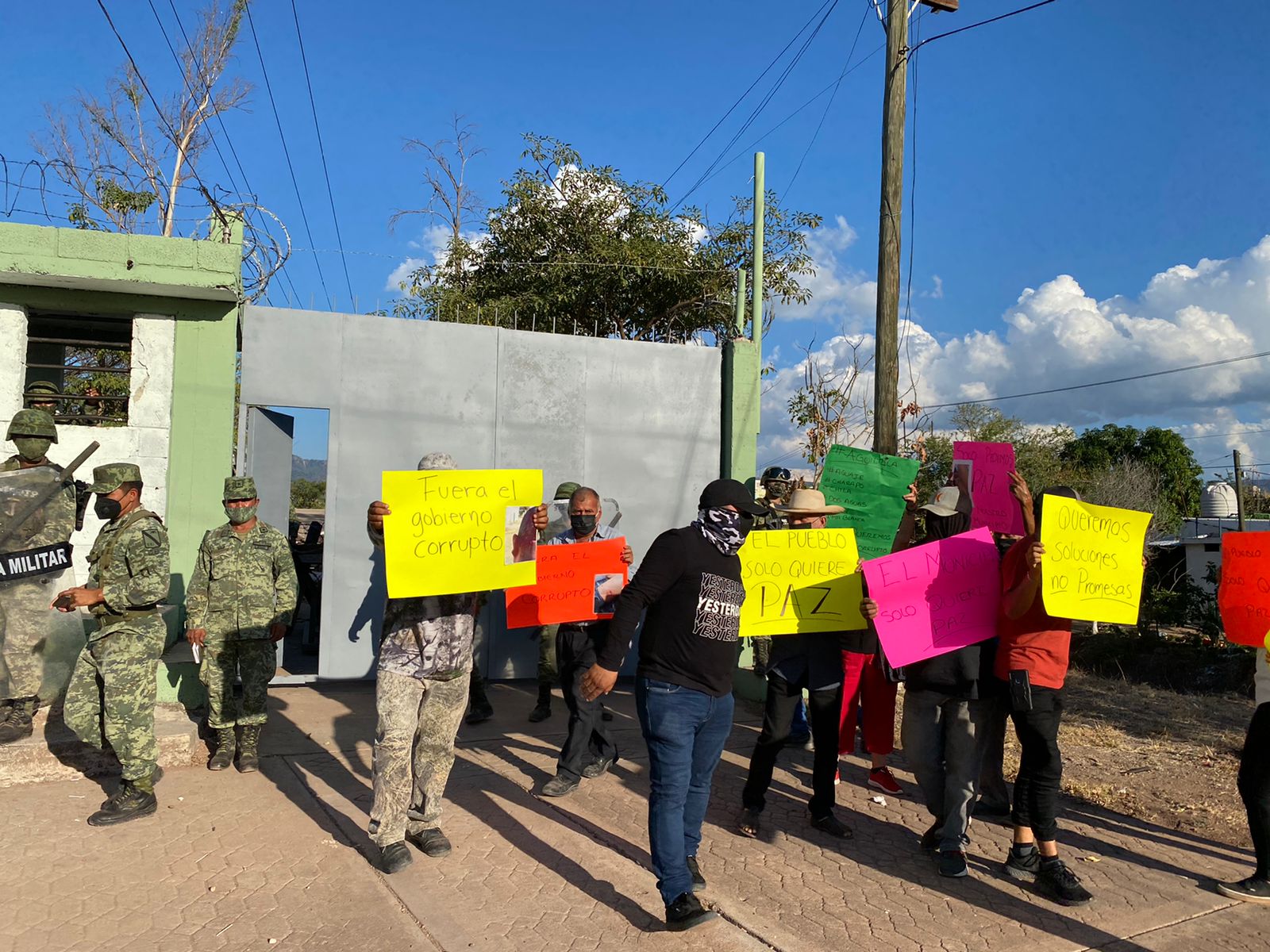 Aguililla, Michoacán.- Habitantes de Aguililla se manifestaron está tarde afuera del cuartel de Ejército Mexicano, a quienes exigen paz para su municipio, además les solicitan garantizar que no apoyarán a Cárteles Unidos.