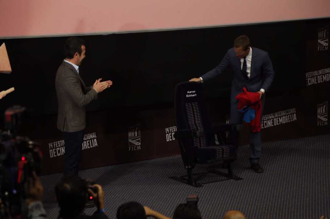 Eckhart antes de presentar la cinta en el FICM fue homenajeado por Alejandro Ramírez y recibió su butaca personalizada , muy contento posó para la prensa e invitó a todo el público a disfrutarla.