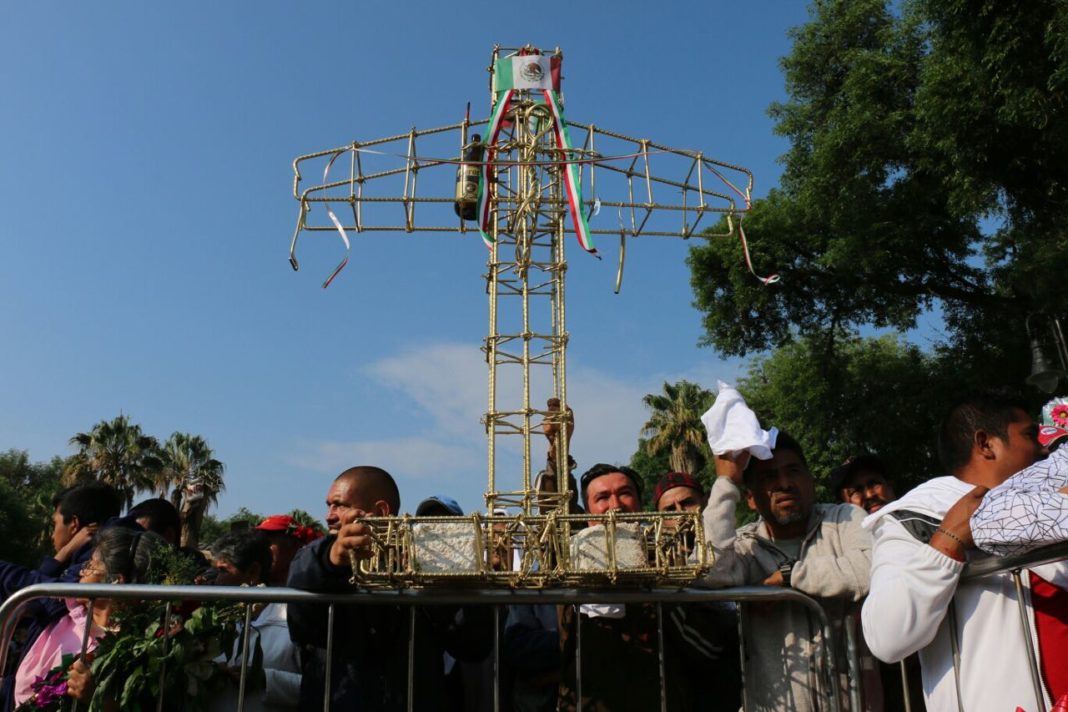 Alfonso al igual que cientos de albañiles y “maistros” (sic) albañiles llegaron por la mañana de este jueves a la Plaza Jardín Morelos, a festejar su día: llevaron su cruz adornada con claveles naturales rojos y amarillos (el color favorito de la patrona), algunas imágenes de Santos y el fervor de acercarse a Dios para que les ayude en la construcción.