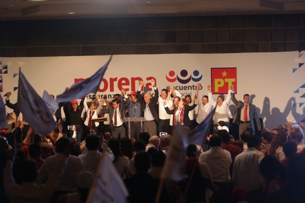 En el marco del arranque de campaña de los candidatos a senadores y diputados federales de la coalición integrada por los partidos Movimiento de Regeneración Nacional (MORENA), Partido Encuentro Social (PES) y Partido del Trabajo (PT), detalló que también buscará que se apruebe la contra-reforma educativa apoyada por el Gobierno Federal de Enrique Peña Nieto, por el PRI, el PRD y el PAN.