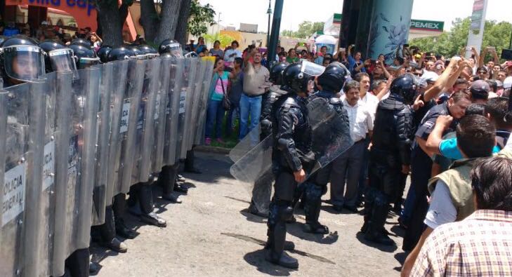 Cabe resaltar que un importante número de elementos de la Policía Federal llegaron a la entidad con el objetivo de apoyar al gobierno del Estado de Silvano Aureoles Conejo y lograr contener las manifestaciones de la coordinadora, que se opone a los pagos de nómina con descuentos a los maestros faltistas.