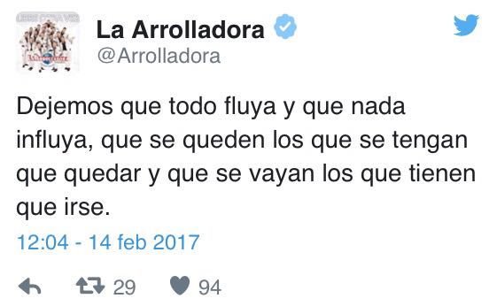 “Nadie quita a nadie, la gente elige con quién quiere estar. Dejemos que todo fluya y que nada influya, que se queden los que se tengan que quedar y que se vayan los que tiene que irse”, fue la respuesta de la banda.
