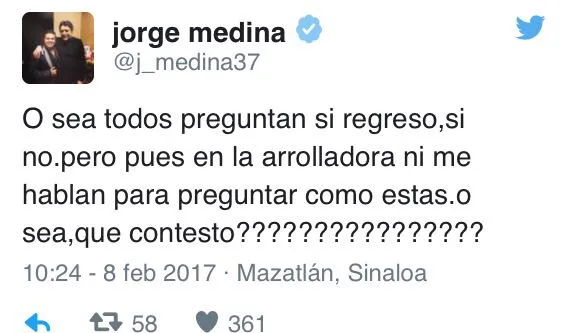 Después de que Medina se desahogará en Twitter no pasó mucho tiempo para que la banda contestara y al parecer Jorge no será bienvenido nunca más.