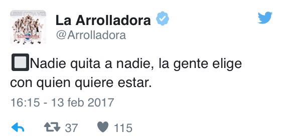 “¿O sea? Todos preguntan si regreso, si no. Pero pues en La Arrolladora ni me hablan para preguntar: ‘¿cómo estás?’. O sea, ¿qué contesto?, Hay cosas obvias en la vida y el silenció también es una respuesta, ¿o no lo creen? Y rogar no es lo mío, ¡anoten eso! Me pongo guapo y a trabajarle en la tienda!! Pues qué más hay que buscarle”, fueron las indirectas que le mando a la banda.