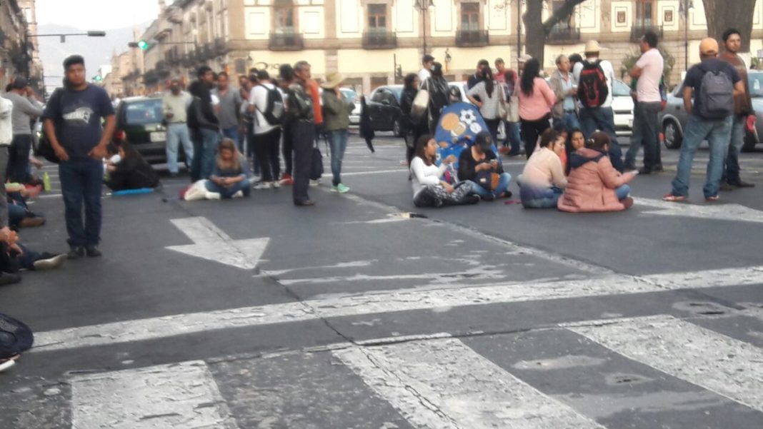 Morelia, Michoacán.- Agremiados de la Coordinadora Nacional de Trabajadores de la Educación (CNTE) y normalistas emprendieron una movilización del obelisco a Lázaro Cárdenas rumbo a Palacio de Gobierno, en exigencia de la instalación de una mesa de diálogo para que se les brinde estabilidad laboral.