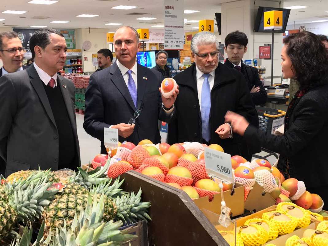 Por último, el secretario Calzada Rovirosa, realizó un recorrido por tiendas de autoservicio en compañía de importadores sudcoreanos, donde comprobó la presencia en anaqueles de productos mexicanos, tales como piña, mango y limón, entre otros.