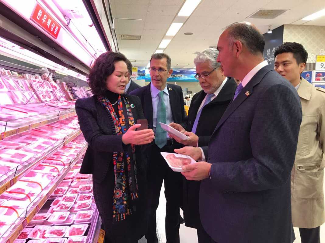Durante el recorrido estuvo acompañado por la presidenta de Highland Foods, Youngmi Youn, quien encabeza esta compañía importadora de productos cárnicos y agrícolas considerada como la de mayor crecimiento e innovación en el mercado de Corea del Sur.
