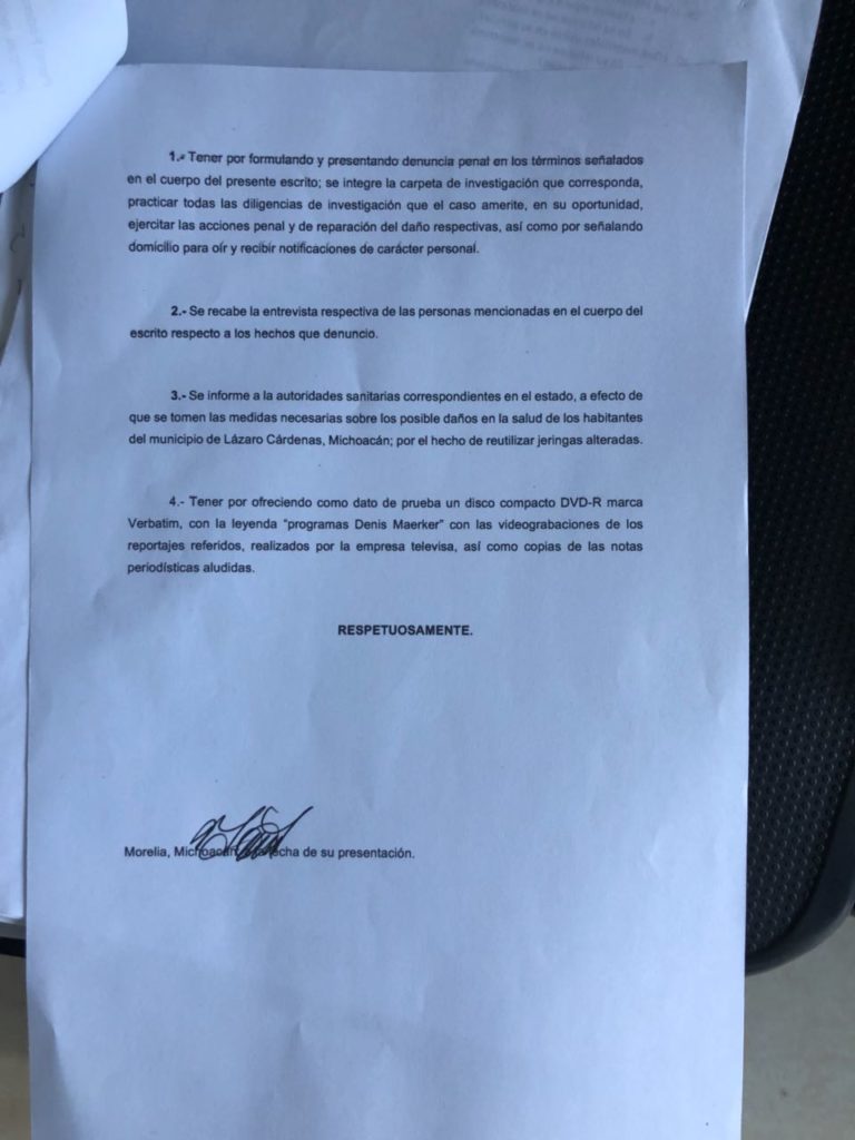 Una denuncia presentada ante la PGR revela el presunto uso de medicinas caducas y jeringas recicladas en el Hospital General de Lázaro Cárdenas, Michoacán