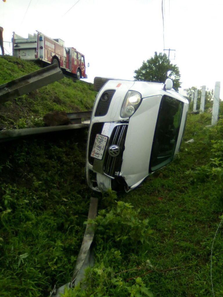 Tras el derrape, el auto rompió la barrera del acotamiento y salió de la cinta asfáltica dirigiéndose sin control hacia un pequeño barranco quedando el vehículo sobre su costado derecho. En tanto, personal de Bomberos acudió al auxilio del conductor.