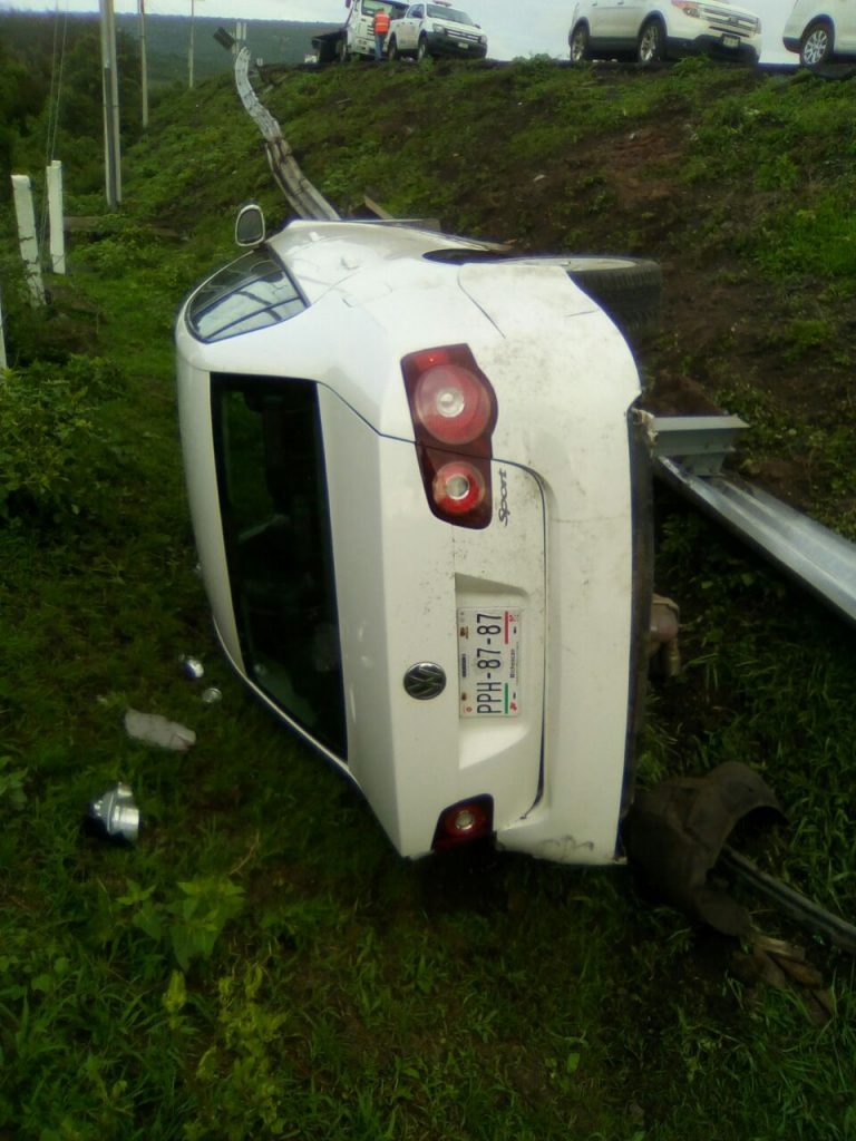 El conductor del auto marca Volkswagen modelo Jetta color blanco, tras el percance resultó ileso.