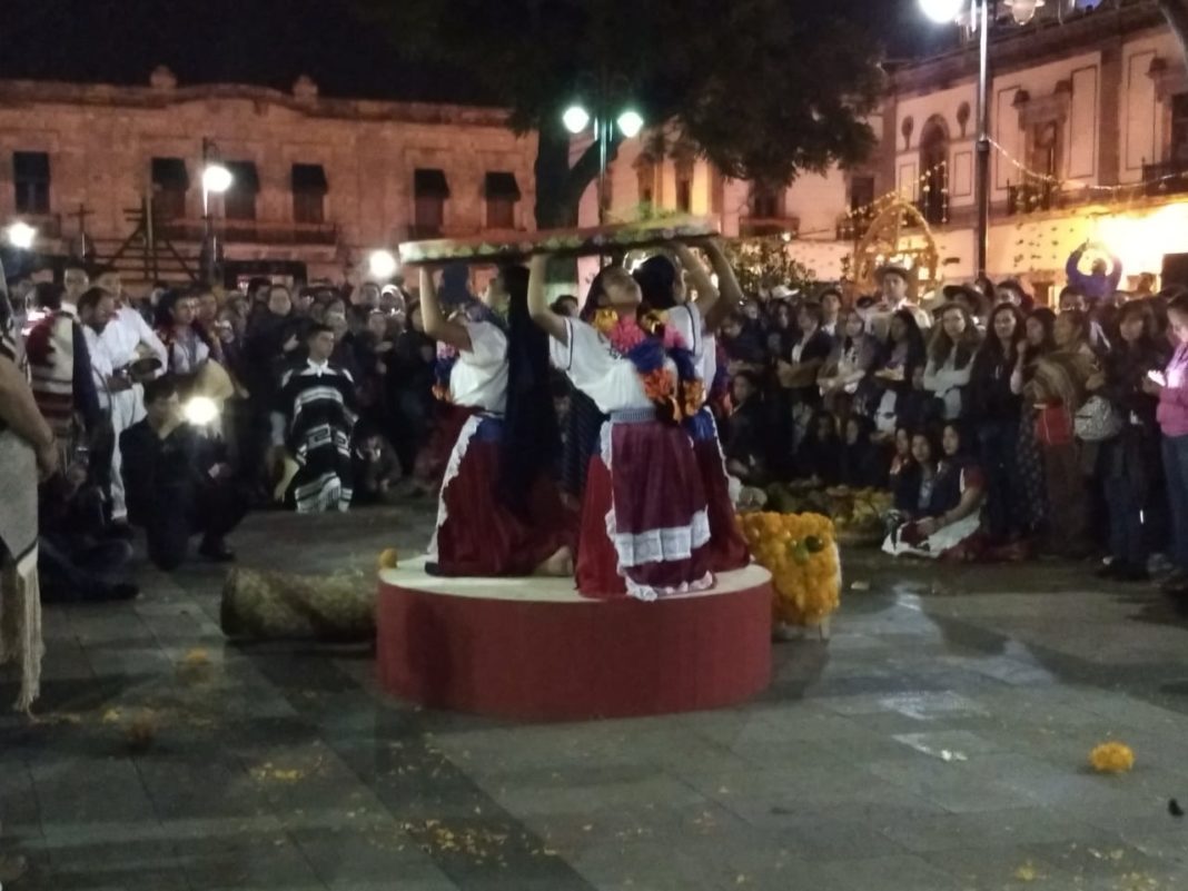 Morelia, Michoacán.- Desde la danza de las ánimas hasta la de los viejitos, entre otras, fueron las que los alumnos de la Preparatoria por Cooperación “Melchor Ocampo”, interpretaron esta noche, ante cientos de turistas y michoacanos, con el fin de despedir a las ánimas que vinieron al mundo de los vivos, para pasar una noche con sus seres queridos.