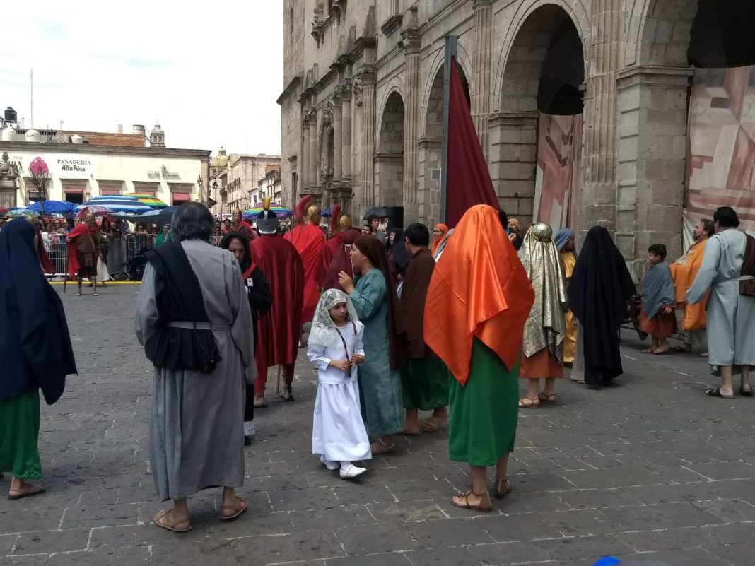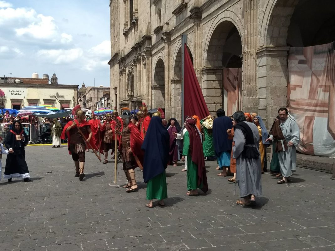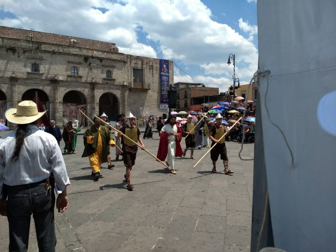 Morelia, Michoacán.-Basada en el libro de Luisa Picarreta “Las horas de la pasión”, donde se muestran las últimas 24 horas de Jesús, fue presentada esta tarde en la Plaza Valladolid, la obra “He aquí el hombre”.
