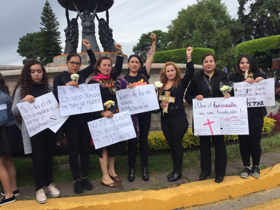 Poco después de las 10:00 horas se apersonaron en la fuente de las Tarascas para ahí, iniciar su protesta, con cartulinas y consignas solicitaron a la autoridad nuevas estrategias de seguridad que garanticen el desarrollo integral de las mujeres y la no violencia.