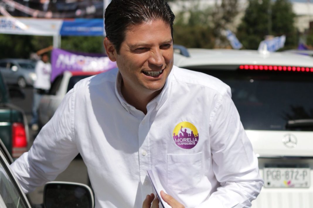 Morelia, Michoacán.- Con sus propias obras como escenario, en Camelinas y Ventura Puente, el Candidato Independiente Alfonso Martínez Alcázar realizó una actividad de acercamiento a la población, a través de volanteo la mañana de este sábado.