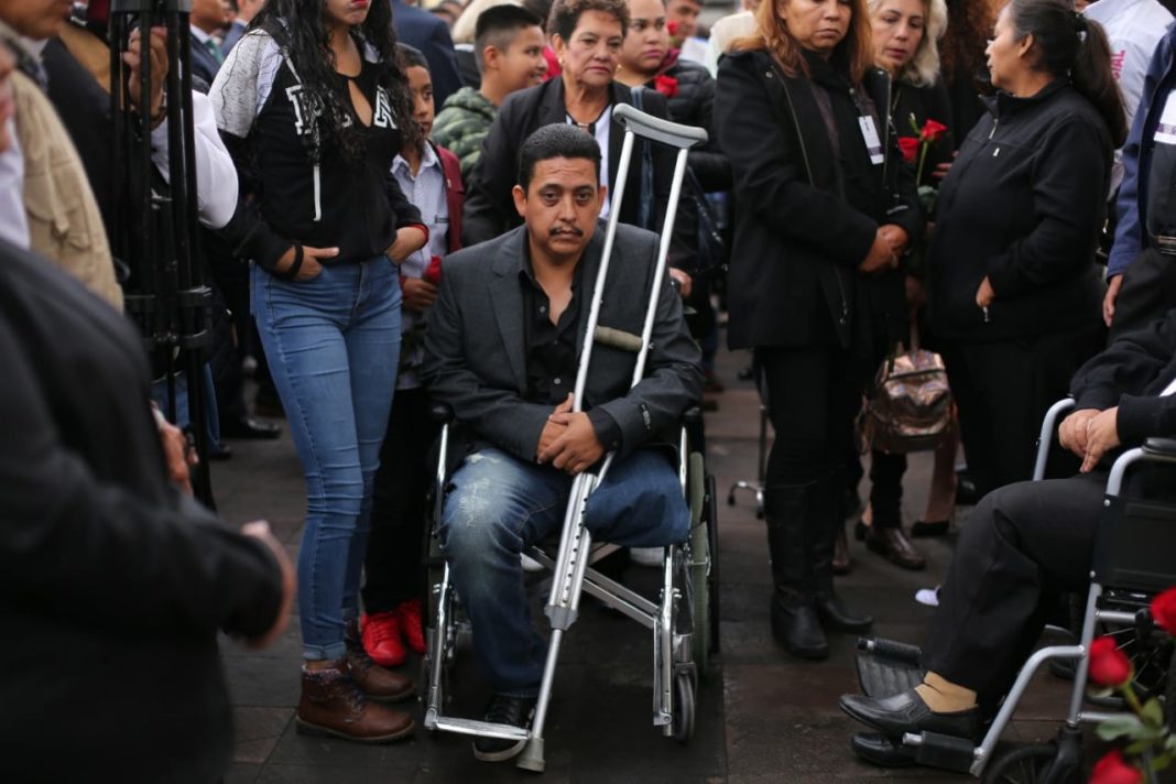 Están en silencio, sentados, no se hablan entre ellos; mutilados y con secuelas internas, en silla de ruedas, con muletas (…) se concentran en el silencio, miran hacia el piso y de vez en cuando alguno de los pequeños que los acompañan rompe el espacio para hacer alguna pregunta. Frente a ellos, el desfile de funcionarios estatales y municipales que acompañan la ceremonia, ellos de pie o sentados sin mucha atención a las víctimas y a la espera del gobernador.