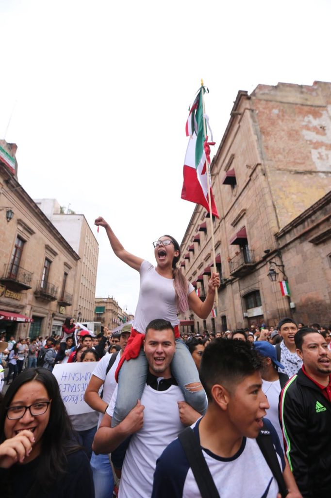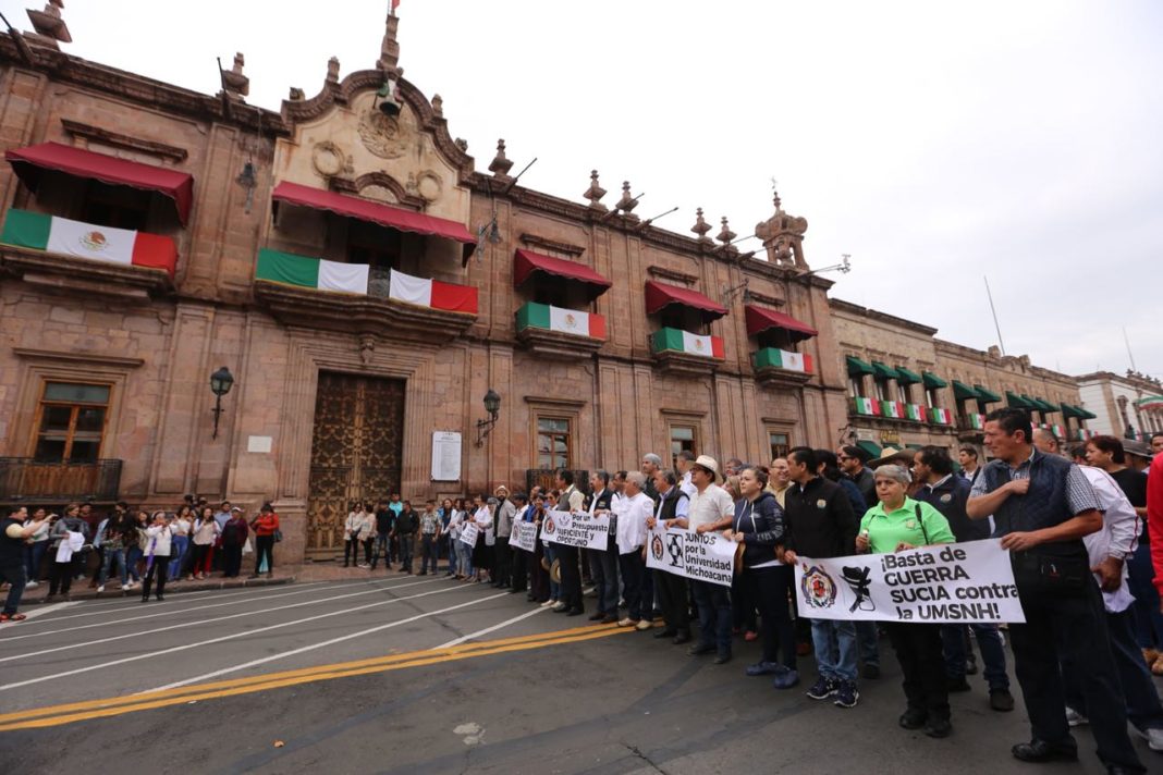 En esta marcha pacífica que partió desde el Jardín Morelos hasta el Colegio de San Nicolás, estuvieron presentes las autoridades de la Casa de Hidalgo, Empleados administrativos, profesores, jubilados y pensionados, estudiantes y miembros de la Coordinadora de Universitarios en Lucha (CUL).