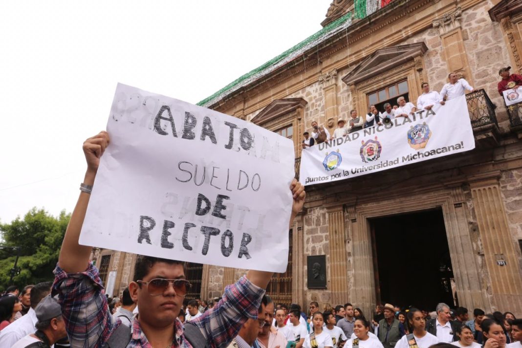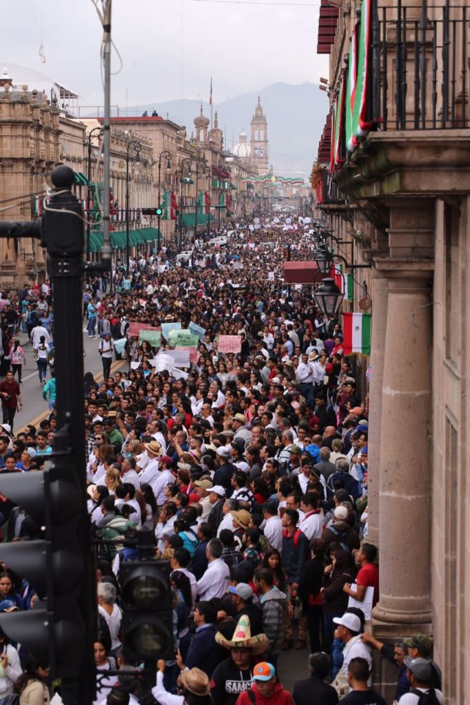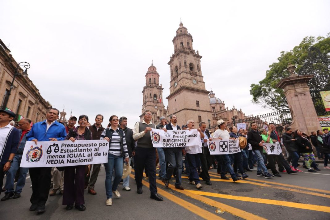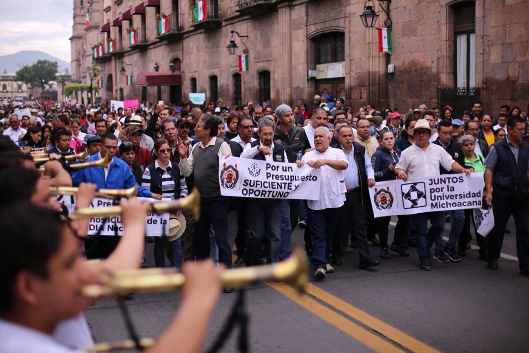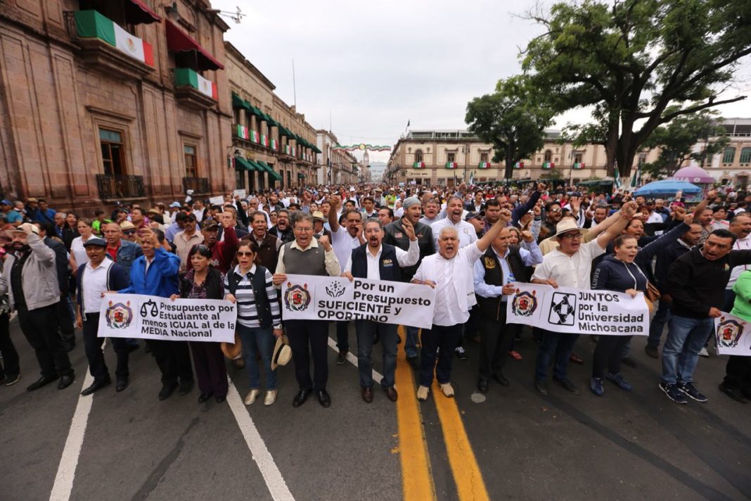 Dicha marcha que llamaron “de la unidad” se realizó para exigir al Congreso del Estado dote de un presupuesto suficiente a la Máxima Casa de Estudios del Estado de Michoacán.