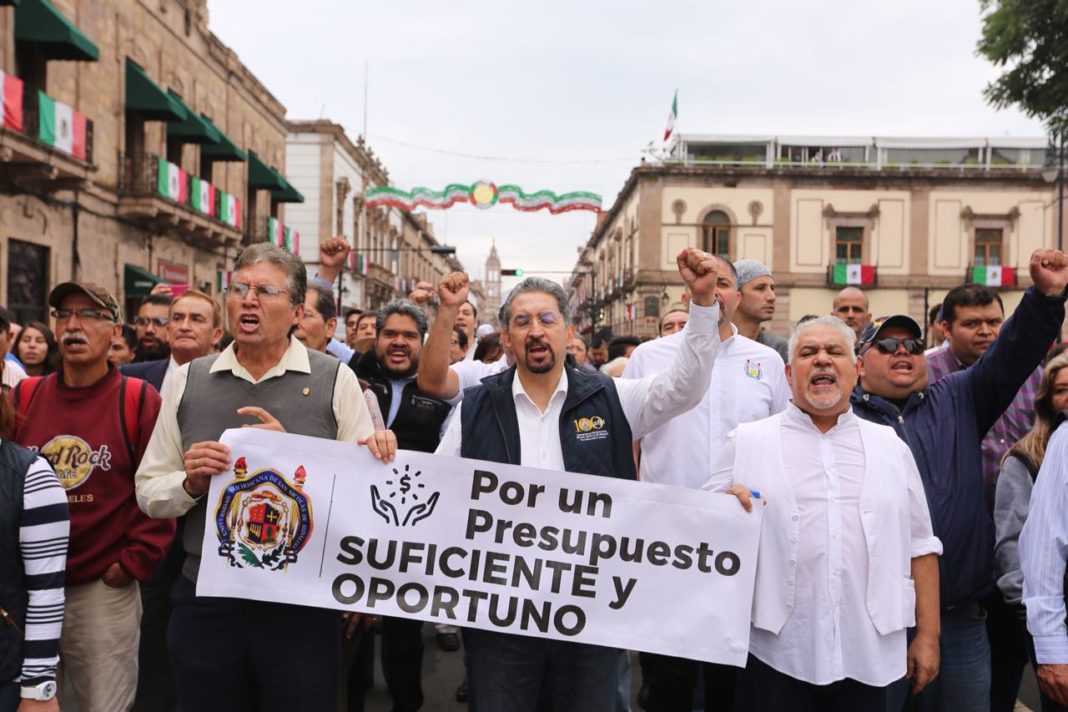 Durante su recorrido sobre la avenida Madero, se detuvieron un instante afuera del Congreso del Estado para exigir que se le apoye a la Casa de Hidalgo con recurso suficiente para salir de la crisis financiera que actualmente atraviesan, y para pagar los salarios de los meses de octubre, noviembre y diciembre del presente año.