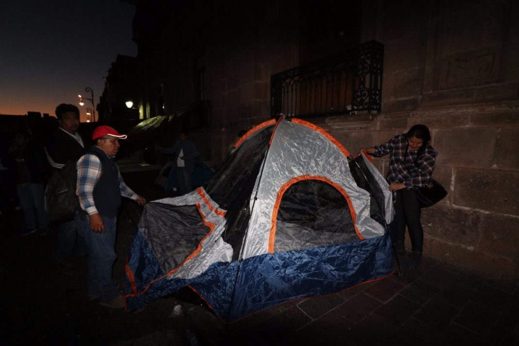 El frío que ha comenzado a arreciar en la capital michoacana no fue impedimento para que la CNTE estableciera un plantón en pleno Centro Histórico, exigiendo que se clarifique el rumbo financiero de la Secretaría de Educación en el Estado (SEE) de cara al cierre de año.