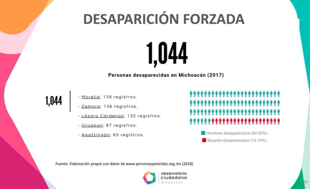 Morelia, Michoacán.- En Michoacán se han registrado mil 44 desapariciones forzadas; en México fueron más de 30 mil de acuerdo con el informe anual presentado por el Observatorio Ciudadano de Michoacán.
