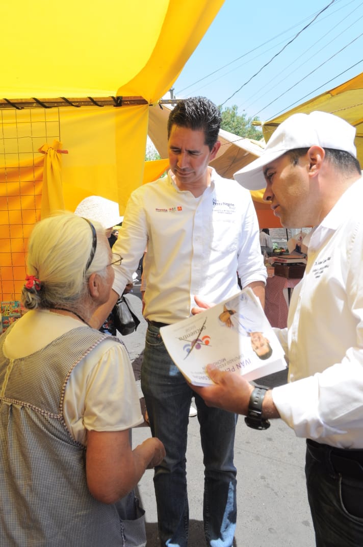Por otra parte, pero más tarde visitó el mercadito que comprende las colonias, Felipe Carrillo Puerto, Jesús Romero Flores, Lomas de San Juan y Precursores de la Revolución, donde saludo a los locatarios; así como a los consumidores, en donde les presentó su proyecto y propuestas para la diputación federal.
