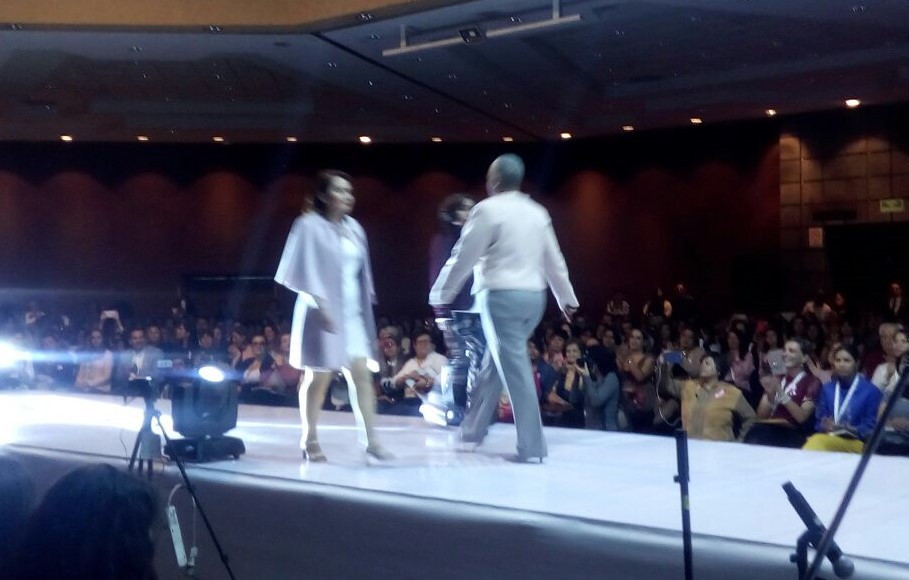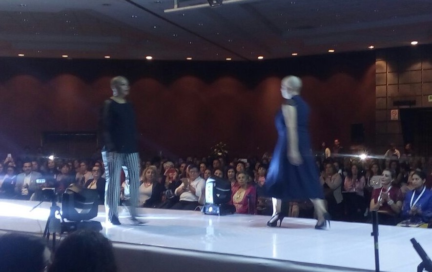 El gran show comenzó cuando dos mujeres con sus sin cabello, ni pelucas, salieron al escenario, enfundadas en pantalones negros largos y unas blusas ajustadas en blanco, mostrando a esas mujeres que se encuentran luchando contra el cáncer.