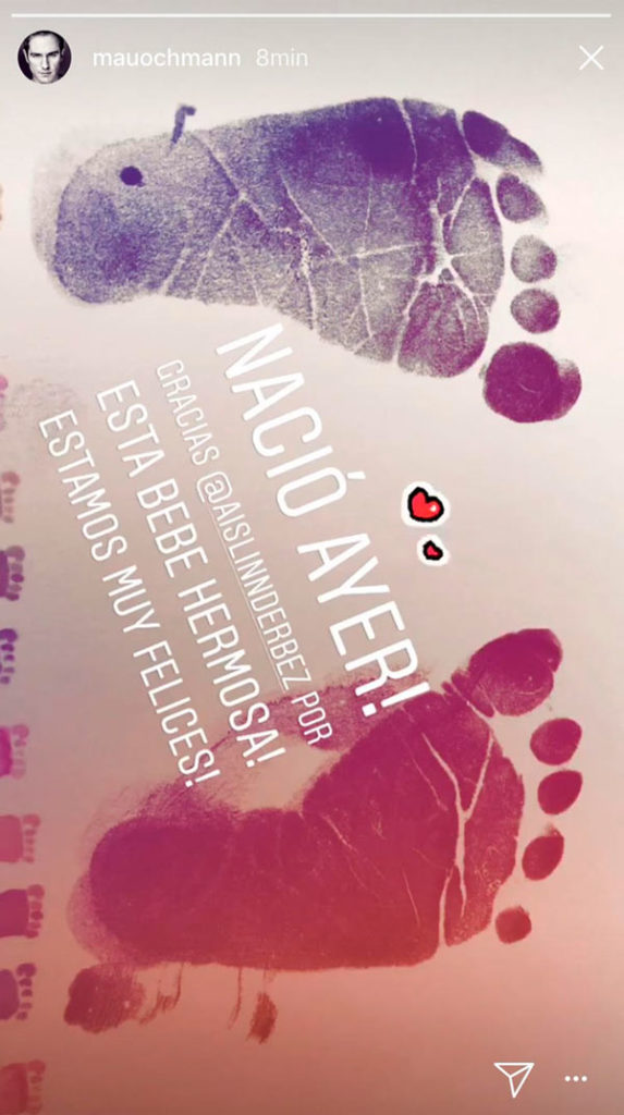Fue a través de una Storie en la red social Instagram, donde el feliz padre compartió un vídeo donde se pueden apreciar los pies de su nueva hija acompañado de un mensaje para su esposa.