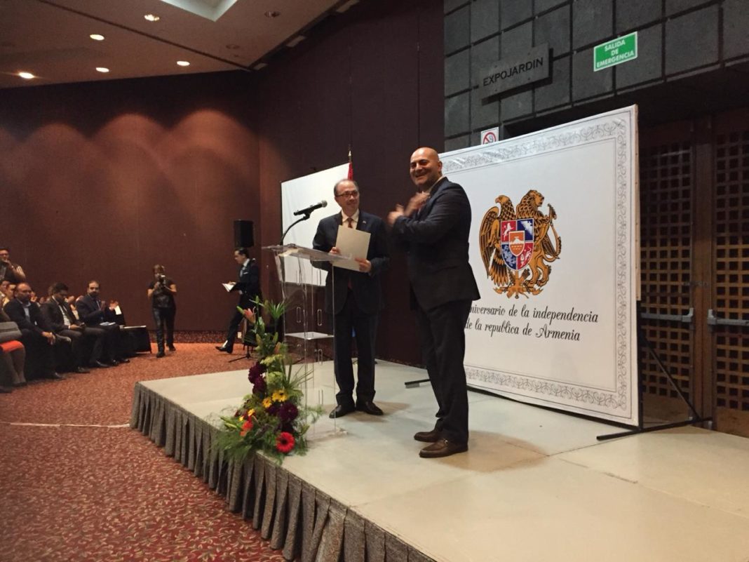 Acompañado por diputados locales, federales, senadores, delegados federales y secretarios de estado, fue que recibió su nombramiento como primer cónsul de Armenia en Michoacán.