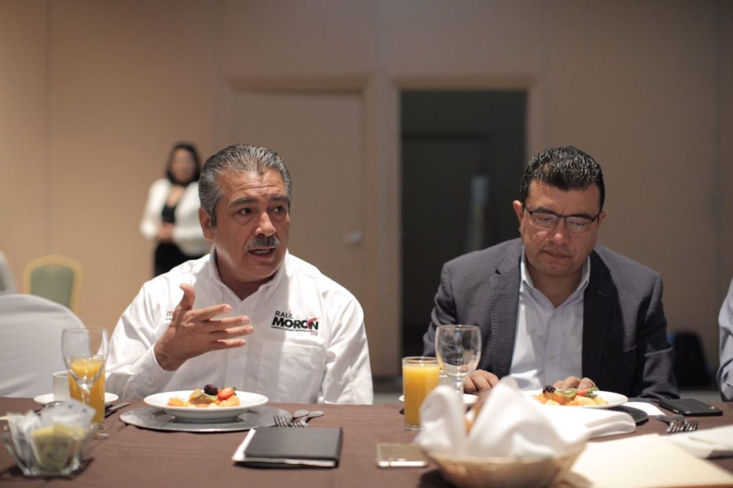Ante José Roberto Santillán Ferreyra, presidente del Comité Consultivo de la CMIC y Jesús Antonio Mazier Contreras, Presidente del Comité Directivo, Raúl Morón se comprometió a cumplir con la gobernanza -que calificó como obligación-, a realizar una desregulación administrativa, a reducir durante su mandato en 50 por ciento los trámites municipales, a revisar y aprobar de inmediato los planes de desarrollo.
