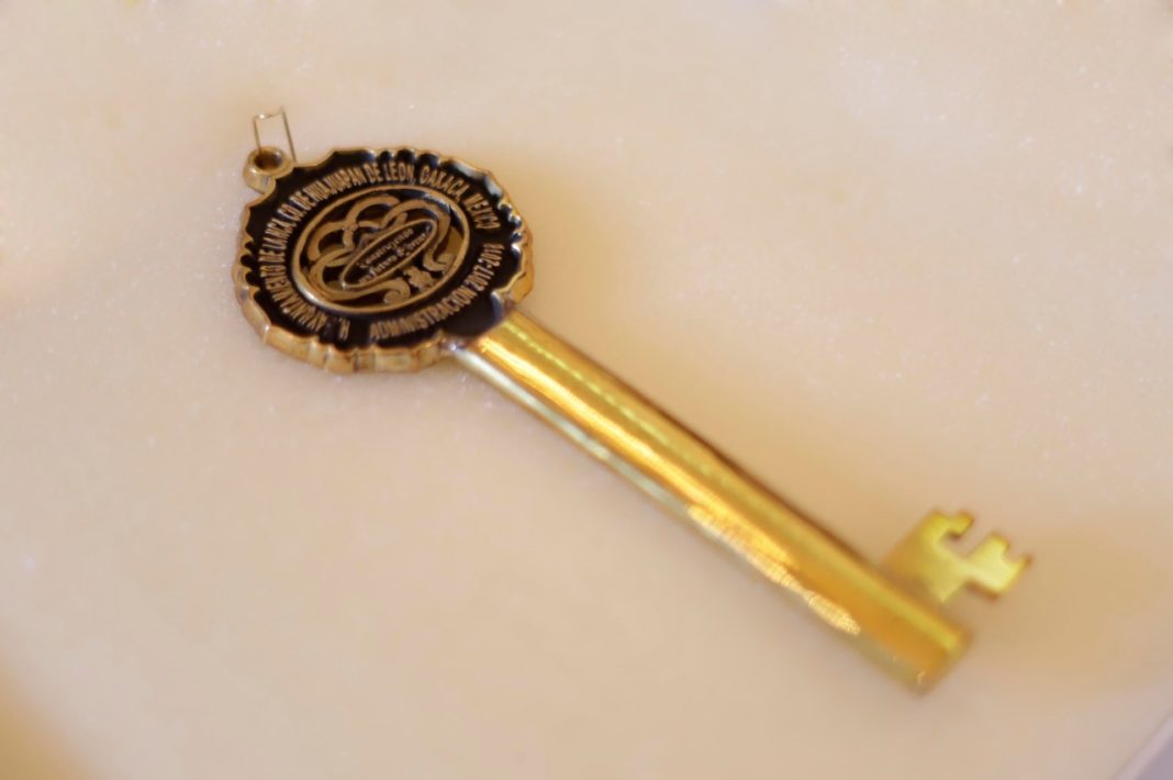 Acto seguido se le entregó las llaves de la ciudad de este municipio del estado de Oaxaca al Alcalde, Raúl Morón en la sala de Cabildo del Palacio Municipal de esta urbe.