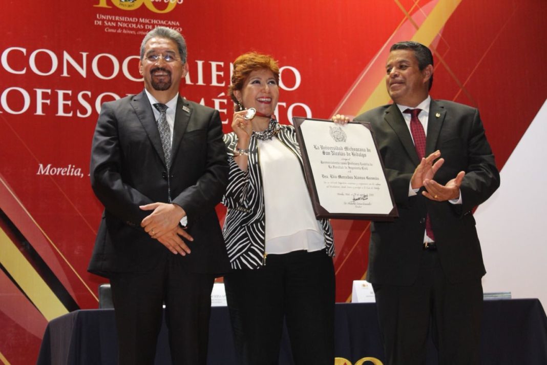 Recordó que este galardón no se entregaba desde hace 38 años y ahora se retomó en el marco de los Cien Años de la Casa de Hidalgo, al ser necesario reconocer la capacidad, el talento, el compromiso y la entrega de los profesores que “inspiran con el trabajo diario y enaltecen la Casa de Hidalgo y hacen grande a Michoacán y a México”.