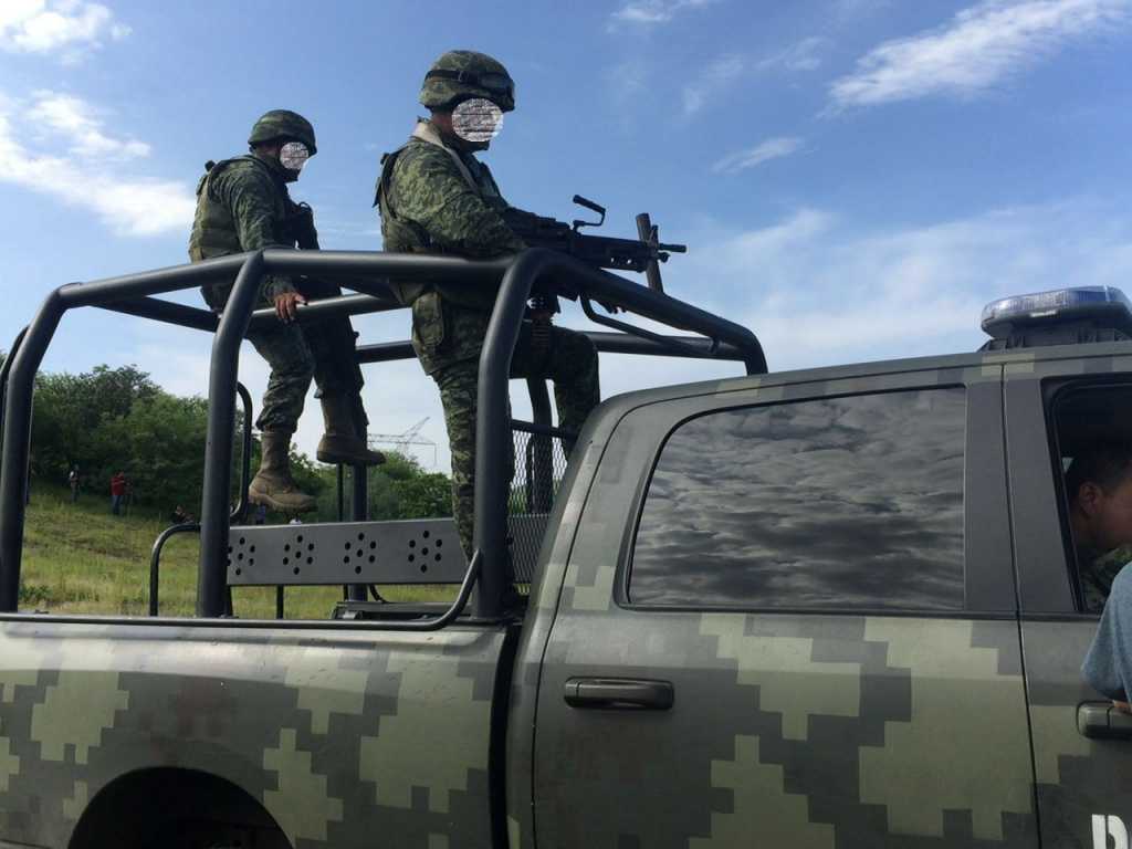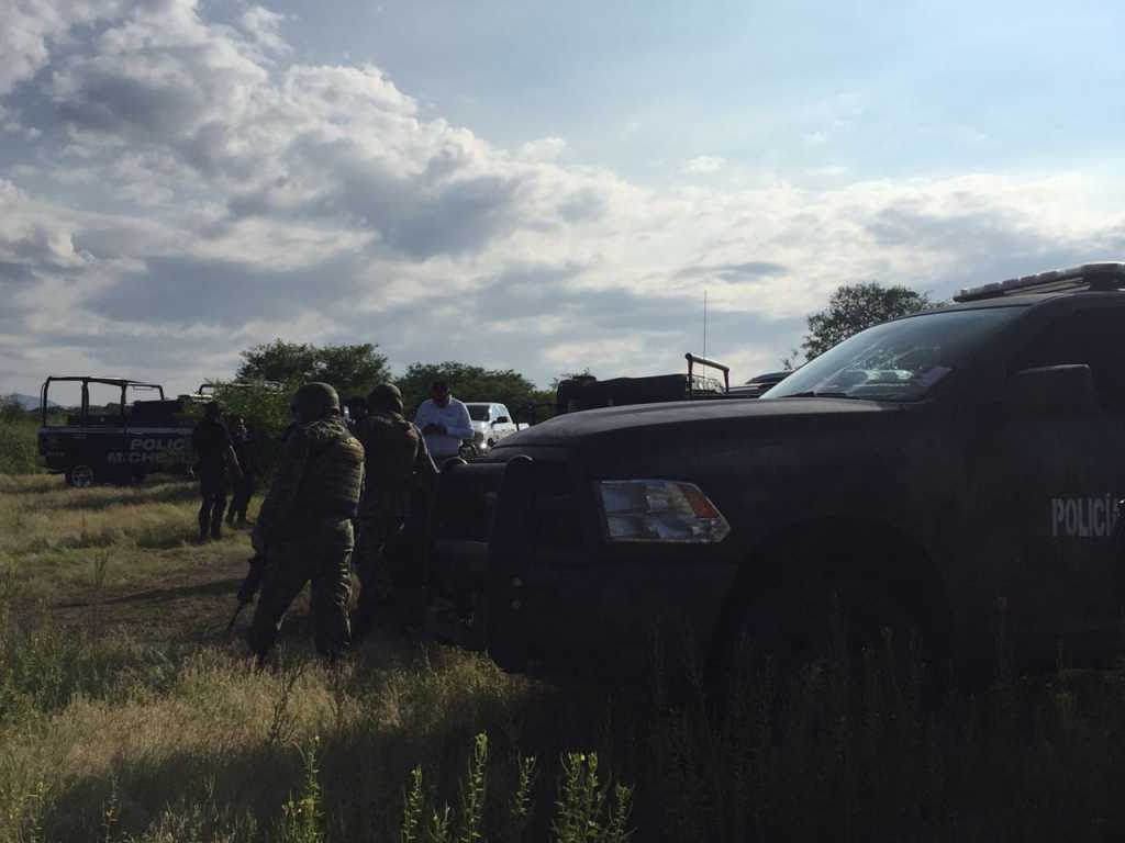 La Huacana, Michoacán.- Decenas de patrullas del Ejército Mexicano y la Policía Michoacán vigilan el trayecto de la carretera libre que conduce al ejido “Villahermosa” en la comunidad de El Chauz, en La Huacana, Michoacán, donde este martes fue derribado un helicóptero y que tuvo un saldo de 4 muertos, el piloto de la aeronave y tres policías.