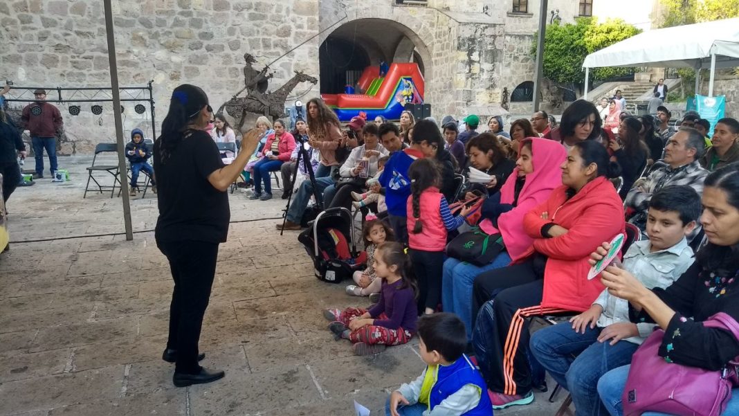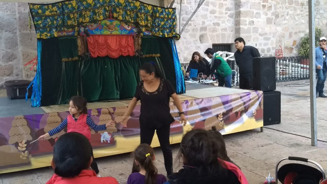Morelia, Michoacán.- Ruth Loaeza se presentó ante una multitud joven e inquieta, como parte de las múltiples actividades del último día del Festival Internacional de Títeres de Morelia “Titerelia”.