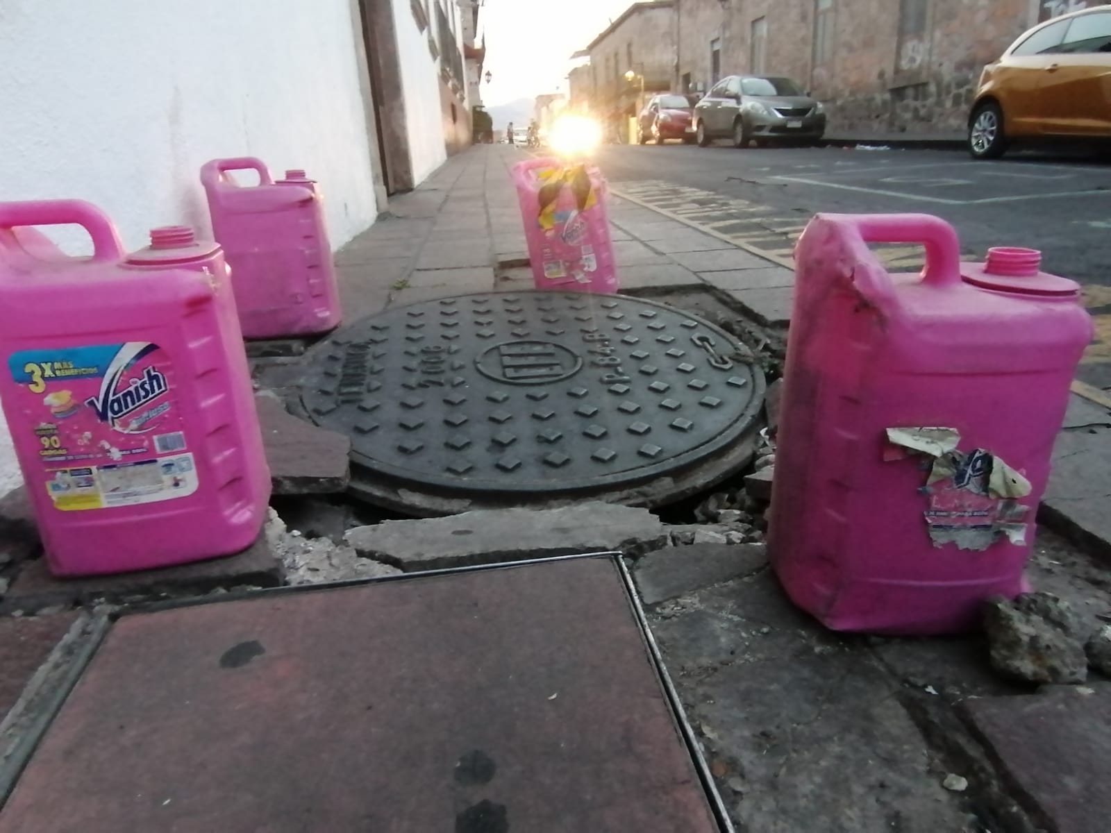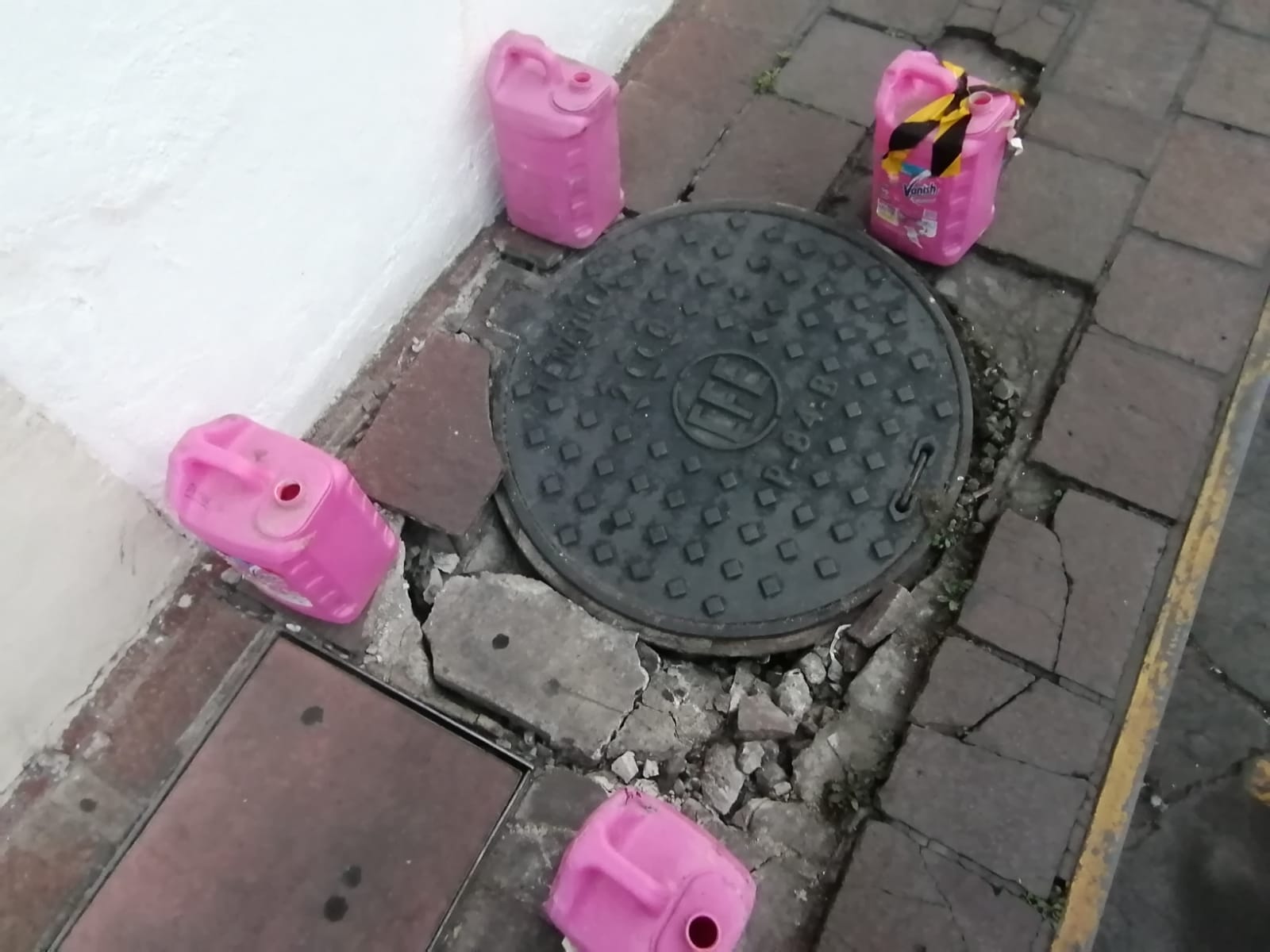 Los vecinos indican que a la alcantarilla se le ha colocado algunos botes de detergente rosa, para que no tengan algún tipo de accidente, indicando que no se percataron puntualmente cuándo se rompió parte de la calle, pero han comentado que también se les ha hecho notificaciones a la Comisión Federal de Electricidad, misma a la que corresponde esta problemática.