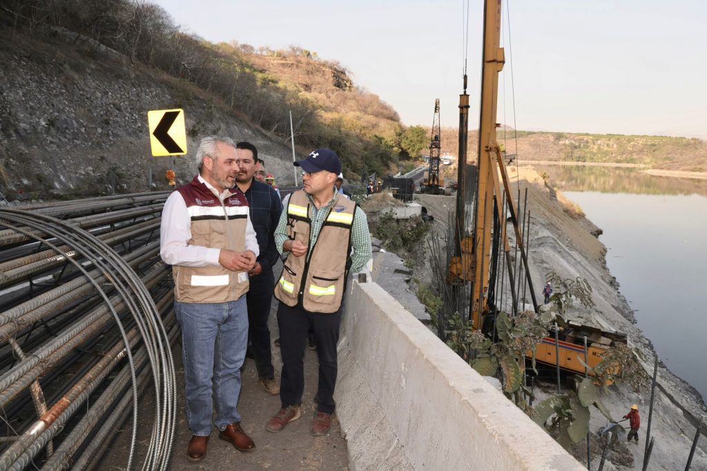 Nueva Italia, Michoacán, 6 de febrero del 2023.- El gobernador Alfredo Ramírez Bedolla supervisó los trabajos de rehabilitación del tramo carretero ubicado frente a la Presa Francisco J. Múgica, de la autopista Siglo XXI.