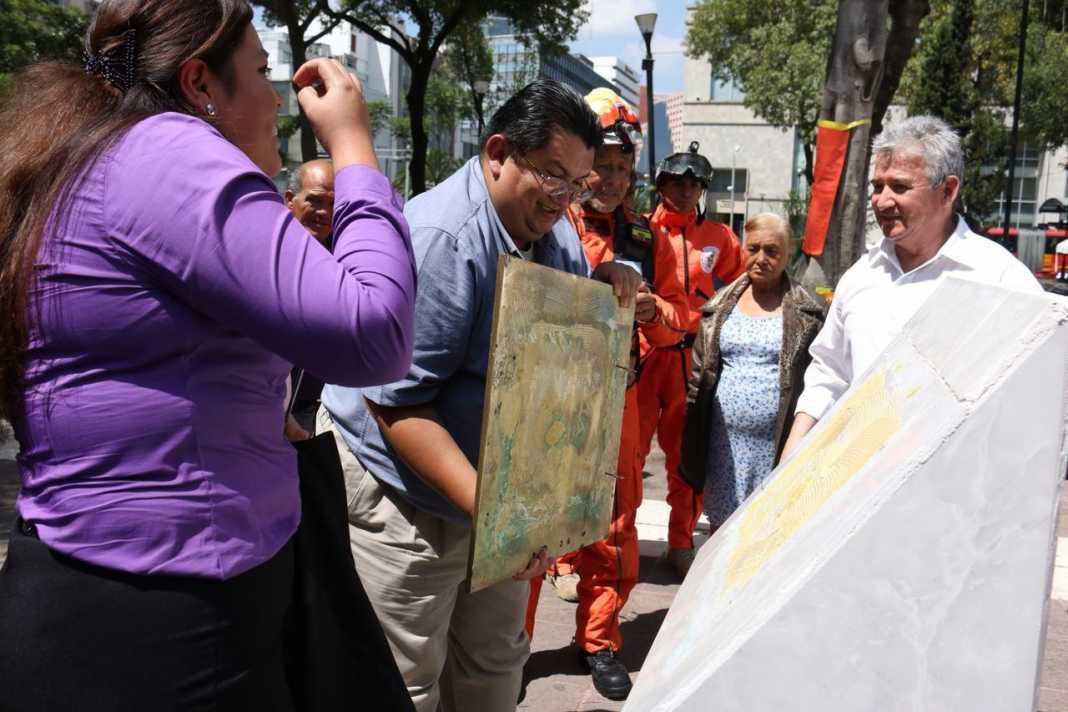 Luego de que 24 HORAS diera a conocer el error de impresión en la placa conmemorativa del terremoto de 1985 develada hoy en la Plaza de la Solidaridad, asesores de la diputada local por el PRD, Socorro Meza, retiraron la placa de metal para “corregirla”.