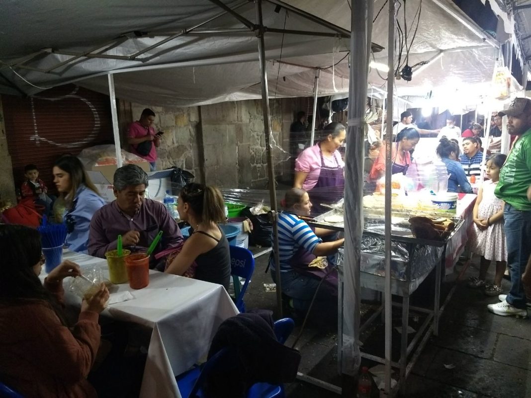 Mientras silenciosamente la procesión del silencio se llevaba a cabo, un sinfín de capitalinos u turistas degustaban de los tradicionales antojitos mexicanos, algunos otros únicamente respiraban el característico olor de los mismos.