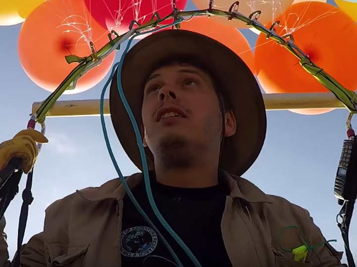En algún momento sentí una mezcla de espanto y euforia mientras ascendía. Tuve que mantener la calma y cortar poco a poco algunos globos’, relató en entrevista a la BBC.